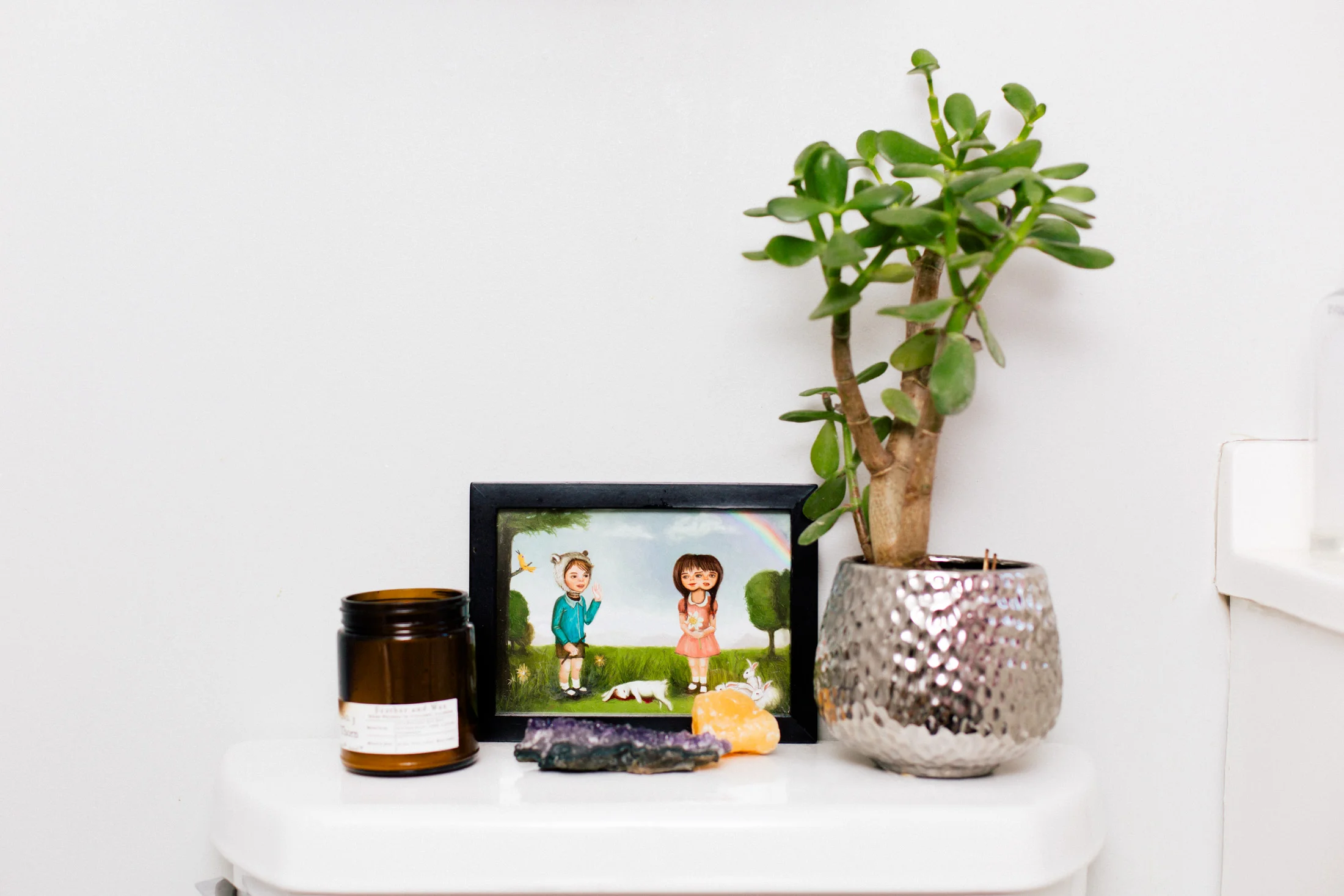 Crystals on my toilet. Incense nubs in my plants. Art by Carol Roque. Photo by Carolina Rodriguez.